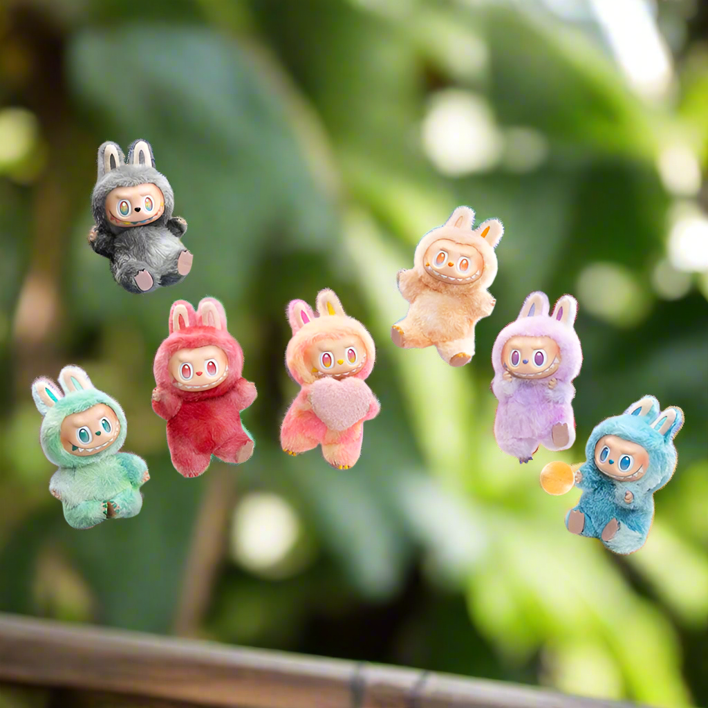 A collectible set of adorable plush characters hidden in a blind box format, each dressed in colorful bunny-themed outfits. Designed by Aemily House, these surprise toys combine soft textures with expressive faces to delight both kids and collectors.